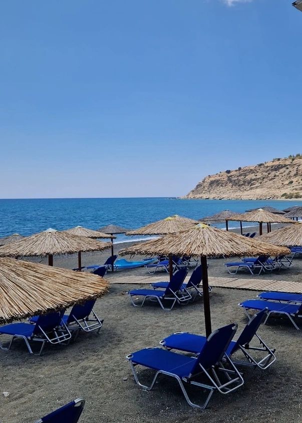 Although it is a small village, of only 600 inhabitants (not sure if cats were counted 😊) it has a long beach that has received the “Blue Flag Award”. It might not be as idyllic as Balos or Elafonisi, as it has a grey colour and it’s pebbled, not golden sand, but the Libyan sea is much warmer (trust me, I did go for a swim there and felt the difference).