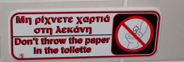 o Speaking of toilets, throwing paper in them is NOT a good thing to do. You will find this sign in almost all bathrooms, doesn’t matter if it’s a 5 star hotel, a Michelin star awarded restaurant or a simple house or apartment you found on booking or Airbnb. Their pipes are more narrow that anywhere in Europe (I think around 2 inches or 5cm in diameter) and they clog very easily. I know, I know ☹ I am also used to throw it in the toilet and using the bins for any type of objects that shouldn’t be thrown in there (such as feminine hygiene products, cotton swabs, wet wipes, make-up removal pads, cotton, toilet paper tubes – unless specified that they dissolve in water – cardboard, small pieces of plastic, etc).