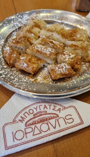 Eat a delicious bougatsa at Bougatsa Iordannis – open from 6am to 2 pm