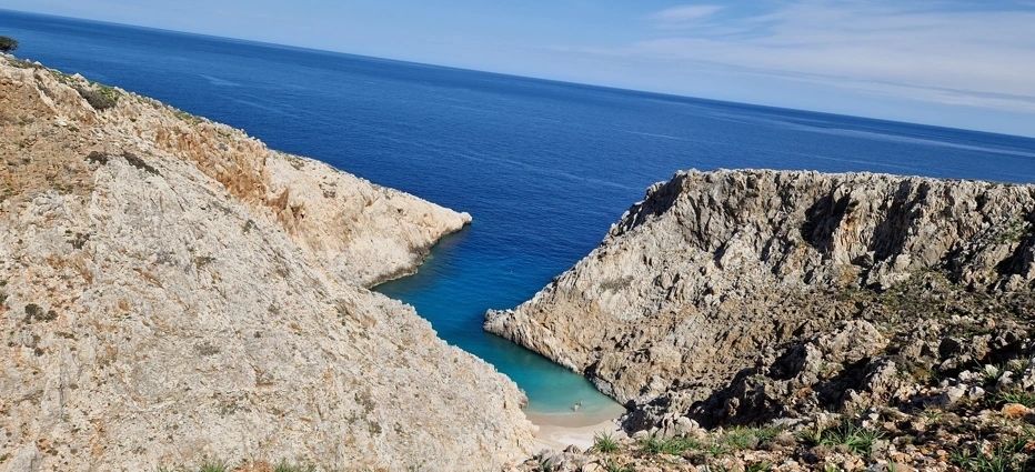 This wonderful hidden gem is located in the wilderness of Akrotiri Peninsula, 22 km north-east of Chania. It is actually a narrow canal, shaped like a thunderbolt when looked from above. Its has a small beach with white sand and a wonderful turquoise water. It is a good place for snorkeling and suitable for small children, as it sheltered by the wind and high waves.