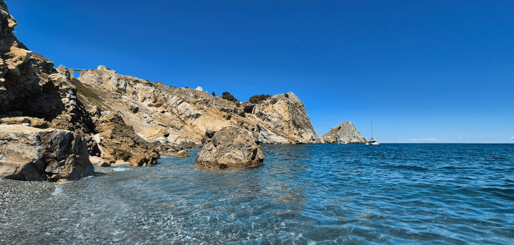 Monastery of Evangelistria – Located in the hills above the town, this historic monastery was instrumental in the Greek Revolution and offers a glimpse into the island’s religious heritage. It also the place where the first flag of Greece was made. The entry fee to the museum is 2 euros and photos are not allowed inside. There is also a shop where you can buy products made by monks, such as raki, beeswax cream, soaps, etc. Outside the premises, just a short walk, you will find a very nice cafe (very crowded, btw) and the Church of the Holy Spring, with beautiful paintings