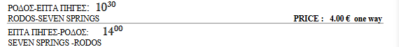 - By bus: there is a daily bus from Rhodes to Seven Springs. Check the official website for updated schedule. The bus stop is at the main road and you will have to walk from there